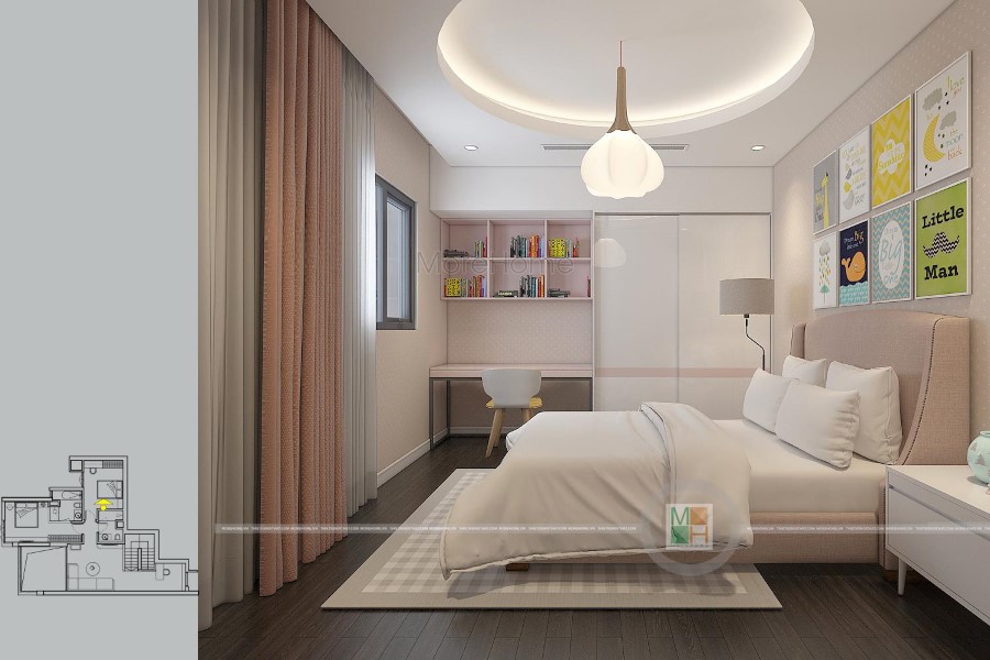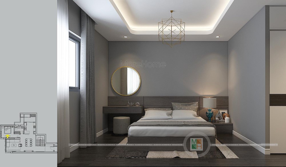 Thiết kế nội thất phòng ngủ hiện đại sử dụng các tone màu trầm ấm, dịu nhẹ phù hợp với tính cách và sở thích của từng thành viên trong gia đình. Sử dụng các đồ nội thất kiểu dáng đơn giản, chủ yếu tập trung vào công năng sử dụng phục vụ tối đa những sinh hoạt hằng ngày của gia chủ.