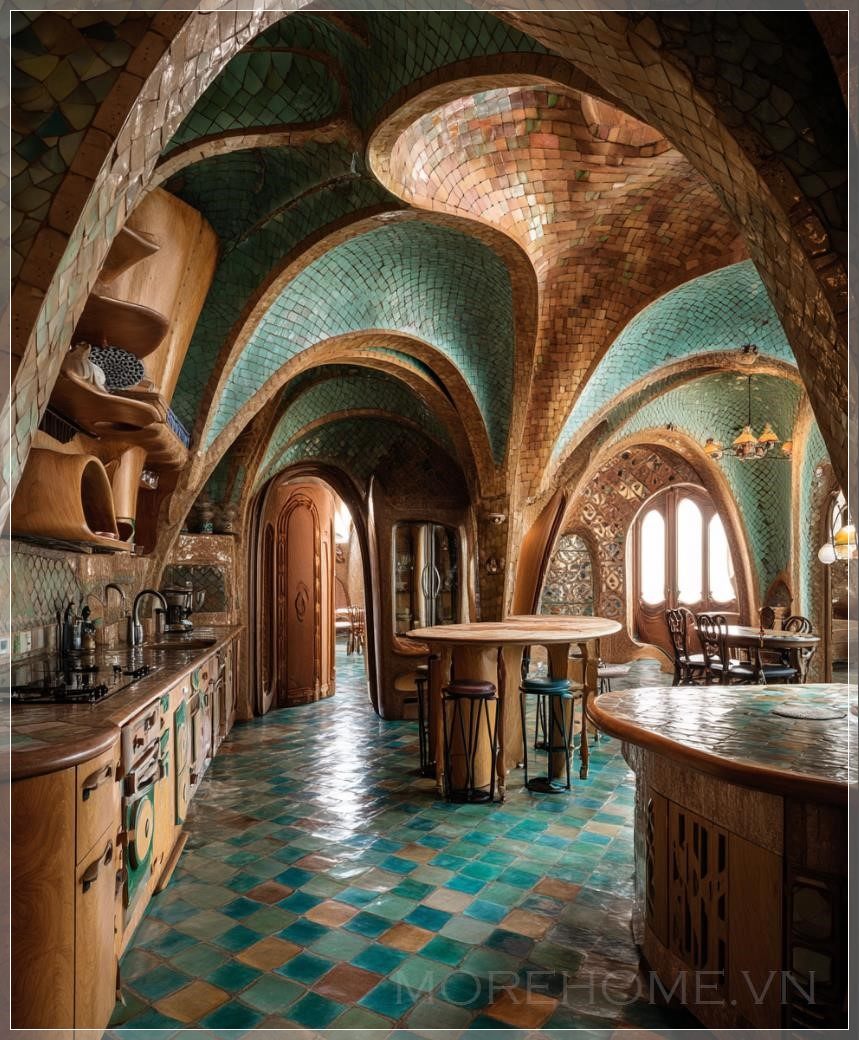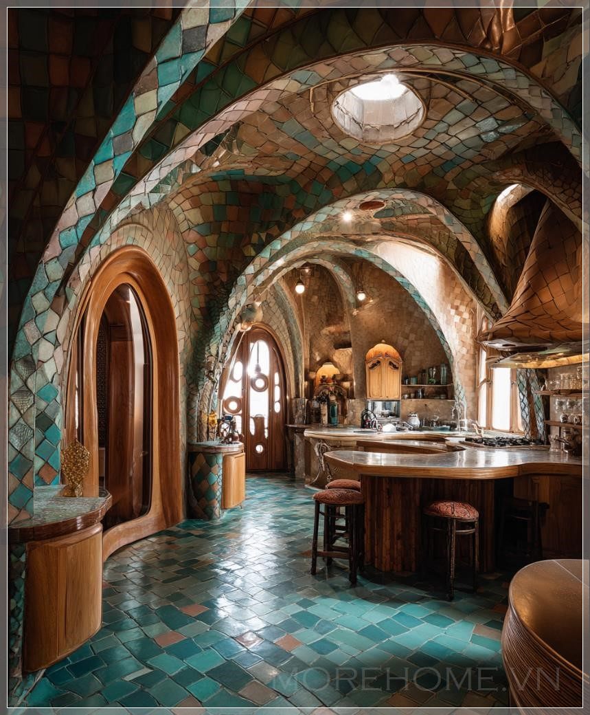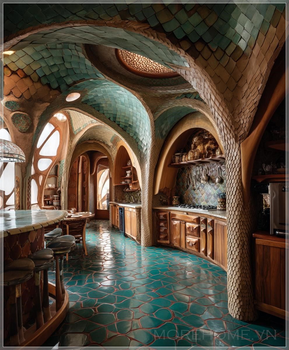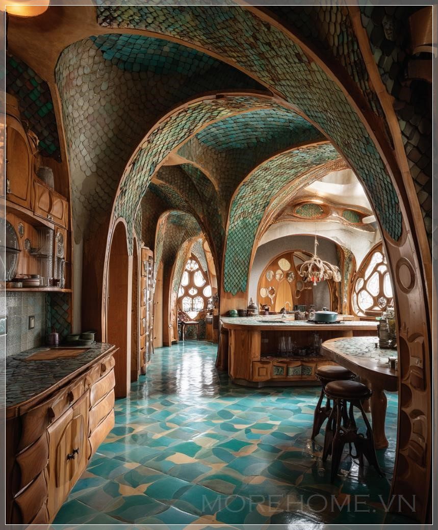 Nội thất bếp nghệ thuật theo phong cách Art Nouveau, thiết kế bởi Guillermo del Toro, nằm trên những đám mây, với kiến trúc làm từ da rắn nhiều màu sắc. Không gian được bài trí với những món đồ nội thất và phụ kiện xa hoa, mang đậm phong cách hữu cơ và sống động, được chế tác từ các vòm Hồi giáo. Chất lượng nhiếp ảnh cao cấp, thể hiện vẻ đẹp tinh tế của không gian này trong từng chi tiết.