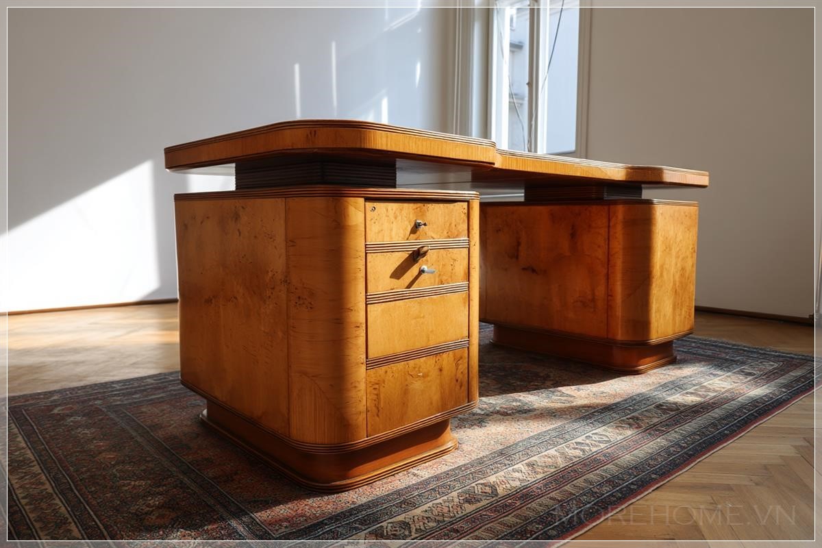 Điều đặc biệt ở phong cách Art Deco của thập niên 1930 chính là sự kết hợp hoàn hảo giữa tính thực用 và vẻ đẹp thẩm mỹ. Mỗi món đồ nội thất đều có chức năng rõ ràng nhưng vẫn mang trong mình giá trị nghệ thuật cao. Chiếc bàn làm việc này không chỉ là nơi để làm việc, mà còn là tác phẩm nghệ thuật thể hiện gu thẩm mỹ tinh tế và tầm nhìn xa của người chủ.