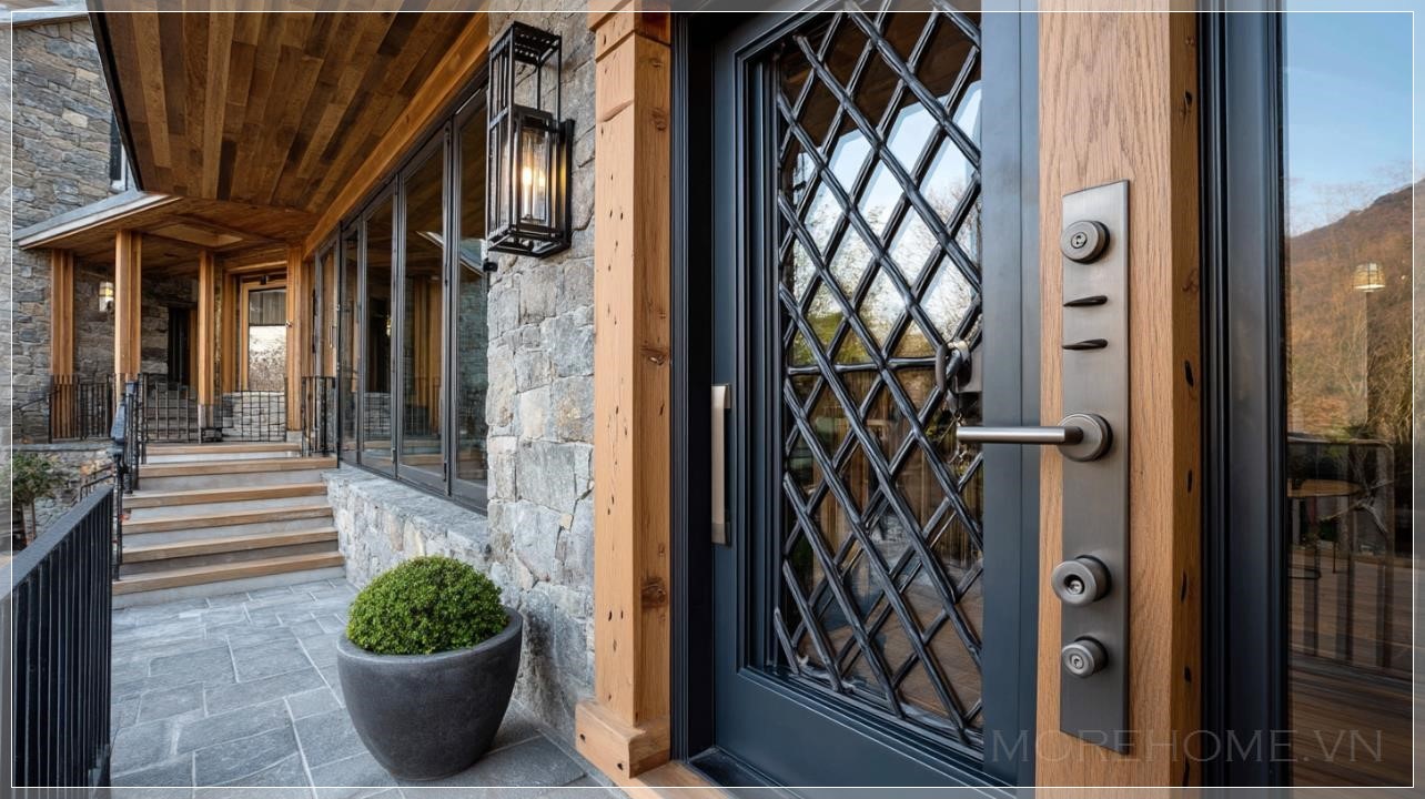 Hệ thống khóa an ninh hiện đại được tích hợp một cách thông minh, gần như vô hình trong tổng thể thiết kế. Công nghệ tiên tiến kết hợp với tay nghề thủ công truyền thống đã tạo nên một sản phẩm vừa an toàn vừa đẹp mắt. Mỗi lần mở cửa đều mang lại cảm giác mượt mà, êm ái như một lời chào đón nhẹ nhàng.