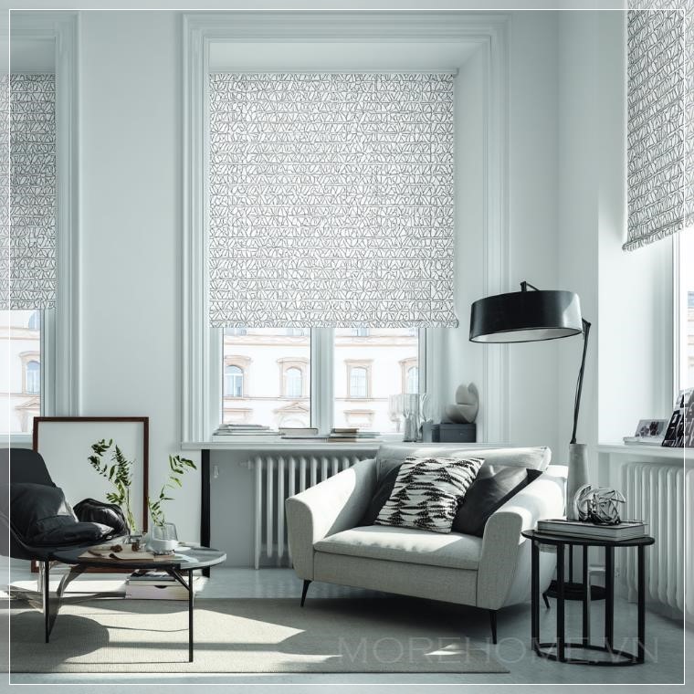 Với những thiết kế như thế này, không gian làm việc không chỉ là nơi để hoàn thành công việc, mà còn là nơi để thư giãn và tìm cảm hứng sáng tạo. Việc lựa chọn màu sắc trung tính như trắng, đen và xám mang lại sự nhẹ nhàng, không gian mở, và không bị quá tải bởi những yếu tố trang trí quá mức. Sự kết hợp giữa rèm cửa sổ với họa tiết hình học và những món đồ nội thất hiện đại, gỗ tự nhiên cũng mang đến một không gian vừa hiện đại, vừa ấm áp và dễ chịu. Đây chính là một không gian lý tưởng cho những ai tìm kiếm sự cân bằng giữa công việc và thư giãn.