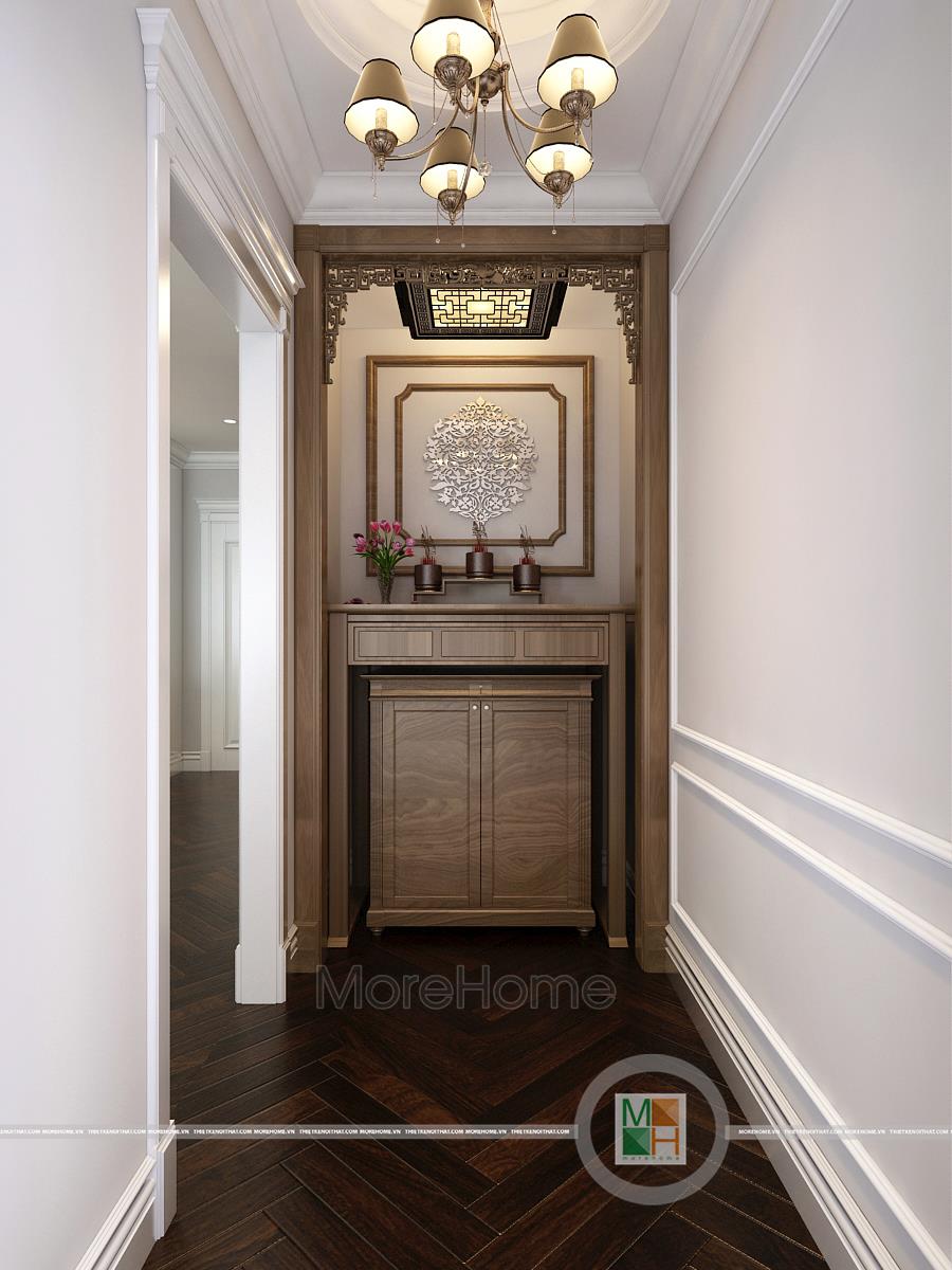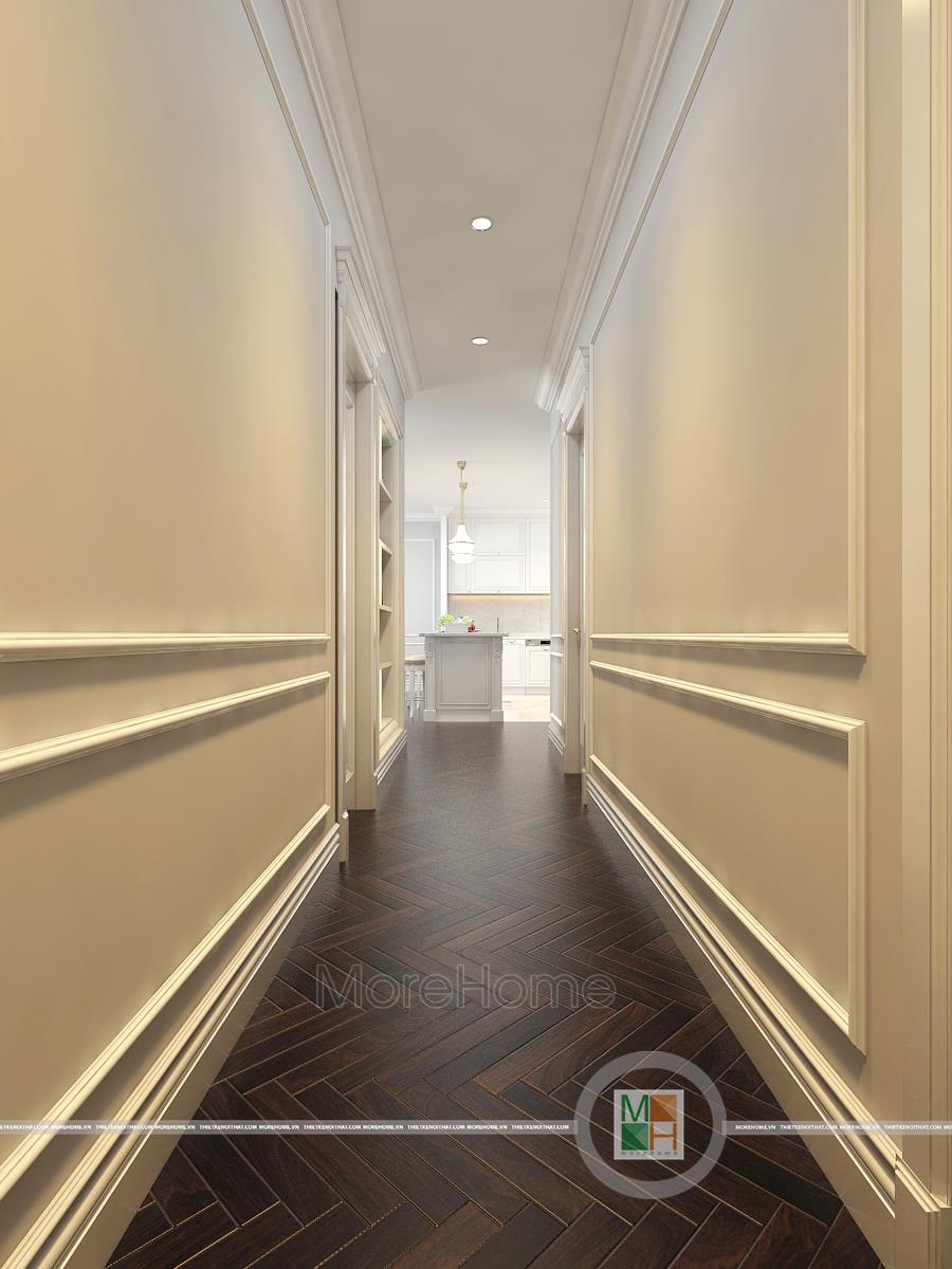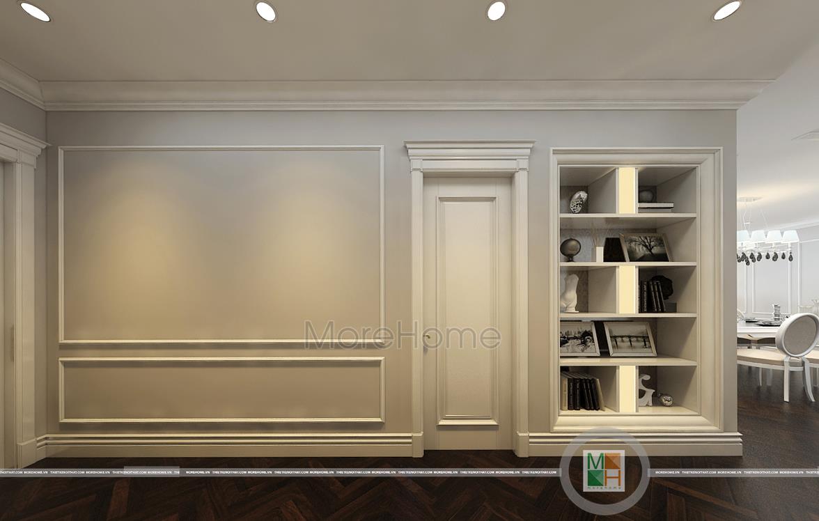 Căn hộ Penthouse Imperia Garden là căn hộ thiết kế theo hướng tân cổ điển chính vì vậy các đường nét được chú trọng hơn cả, các góc nét trạm trổ tính tế và tỉ mỉ được kiến trúc sư vô cùng chú ý. Không giống với các thiết kế hiện đại coi trọng các hình khối đơn giản, rõ ràng, các đường cong tân cổ điển mang đến sự phóng khoáng, sang trọng gợi vẻ đẹp châu Âu cổ. Thiết kế mảng tường khác biệt, sử dụng đá tự nhiên với độ sáng và bóng phù hợp góp phần tạo độ tương phản và tăng tính thẩm mỹ, tính sáng tạo cho thiết kế.