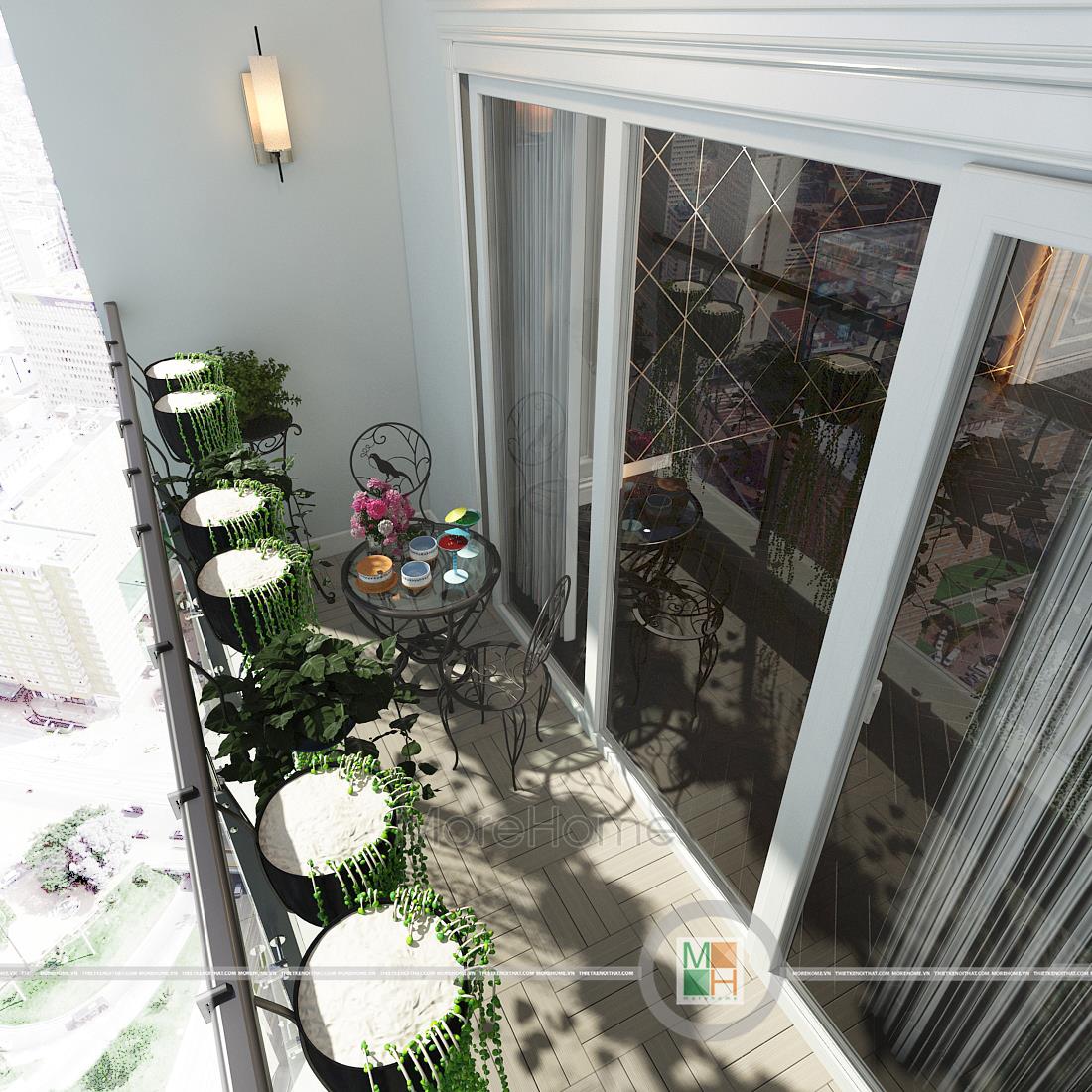 Một trong những thiết kế đặc biệt của căn hộ này là thiết kế ban công mở, không gian xanh thư giãn được kiến trúc sư khéo léo lồng ghép trong thiết kế mang đến một không gian nghỉ ngơi, thư giãn, view toàn cảnh thành phố, thực sự là một địa điểm lý tưởng để thả mình, nhẹ nhàng sau một ngày dài mệt mỏi.