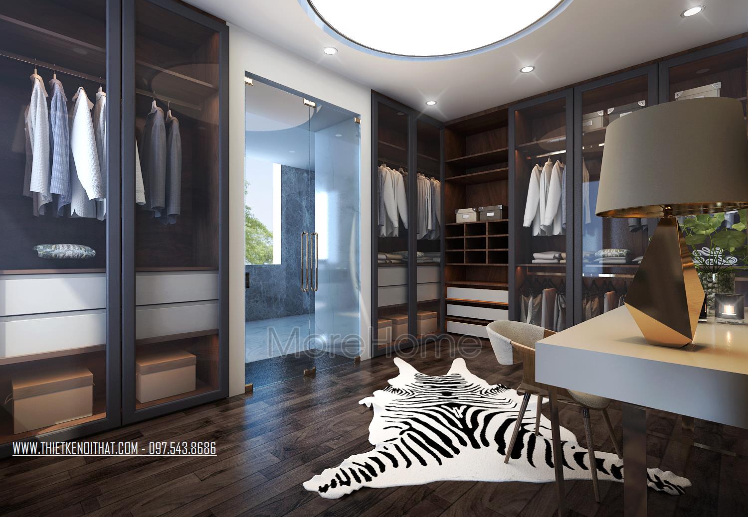 Thiết kế nội thất phòng ngủ Master thực sự là một không gian đáng mơ ước của nhiều người. Khu giường ngủ và tủ quần áo được chia cắt nhẹ nhàng bởi bức chắn linh hoạt. Không phải là tường thô cứng hay các chi tiết thô mà thay vào đó là các thiết kế phân chia rõ ràng, tăng tính tiện nghi cho không gian. Tường thô đơn sắc được thay thế hoàn toàn bằng các thiết kế sử dụng giấy dán tường hoa văn đơn giản và mới lạ. Ánh sáng tự nhiên vẫn là điểm nhấn đặc biệt giúp mang lại sự hứng khởi cho không gian này.