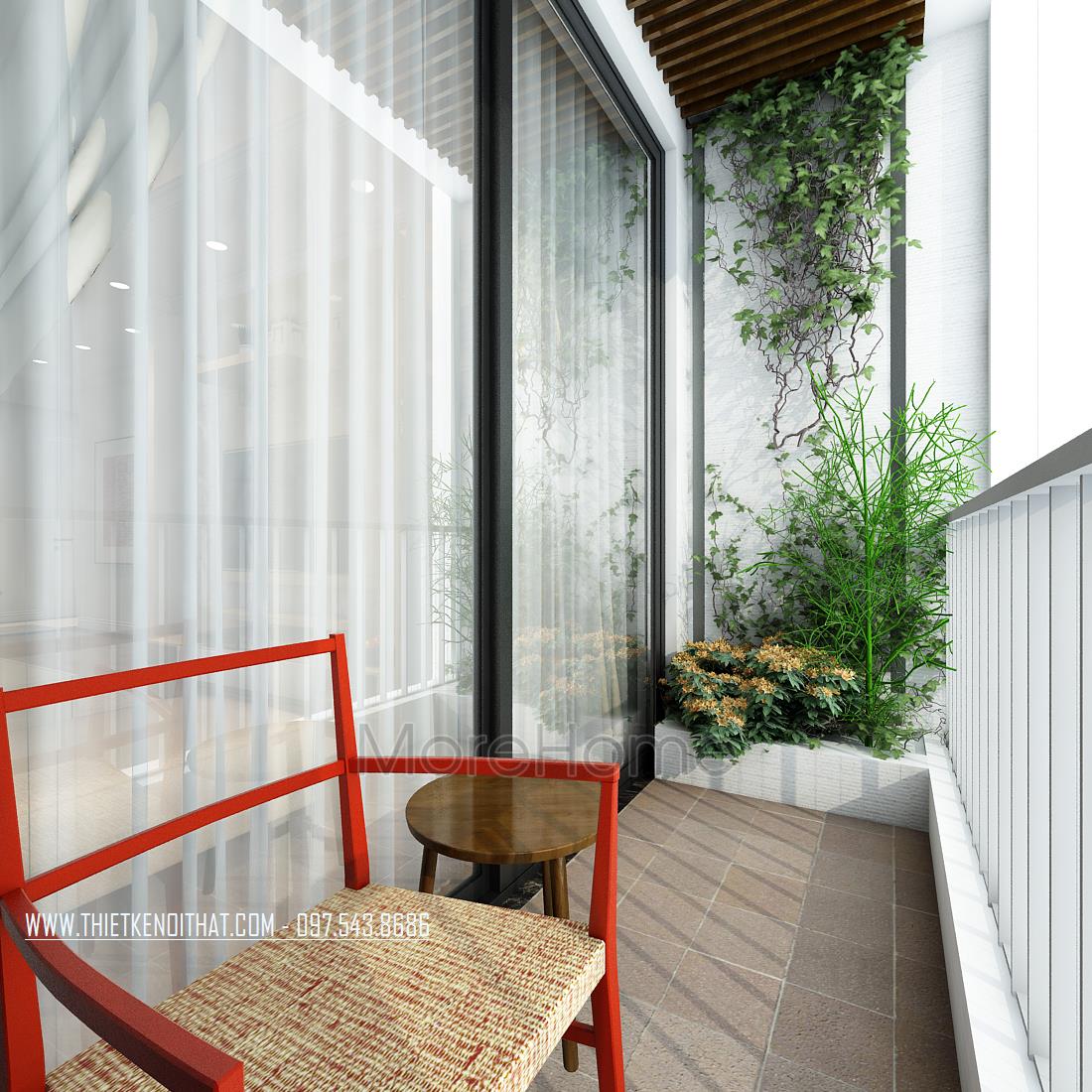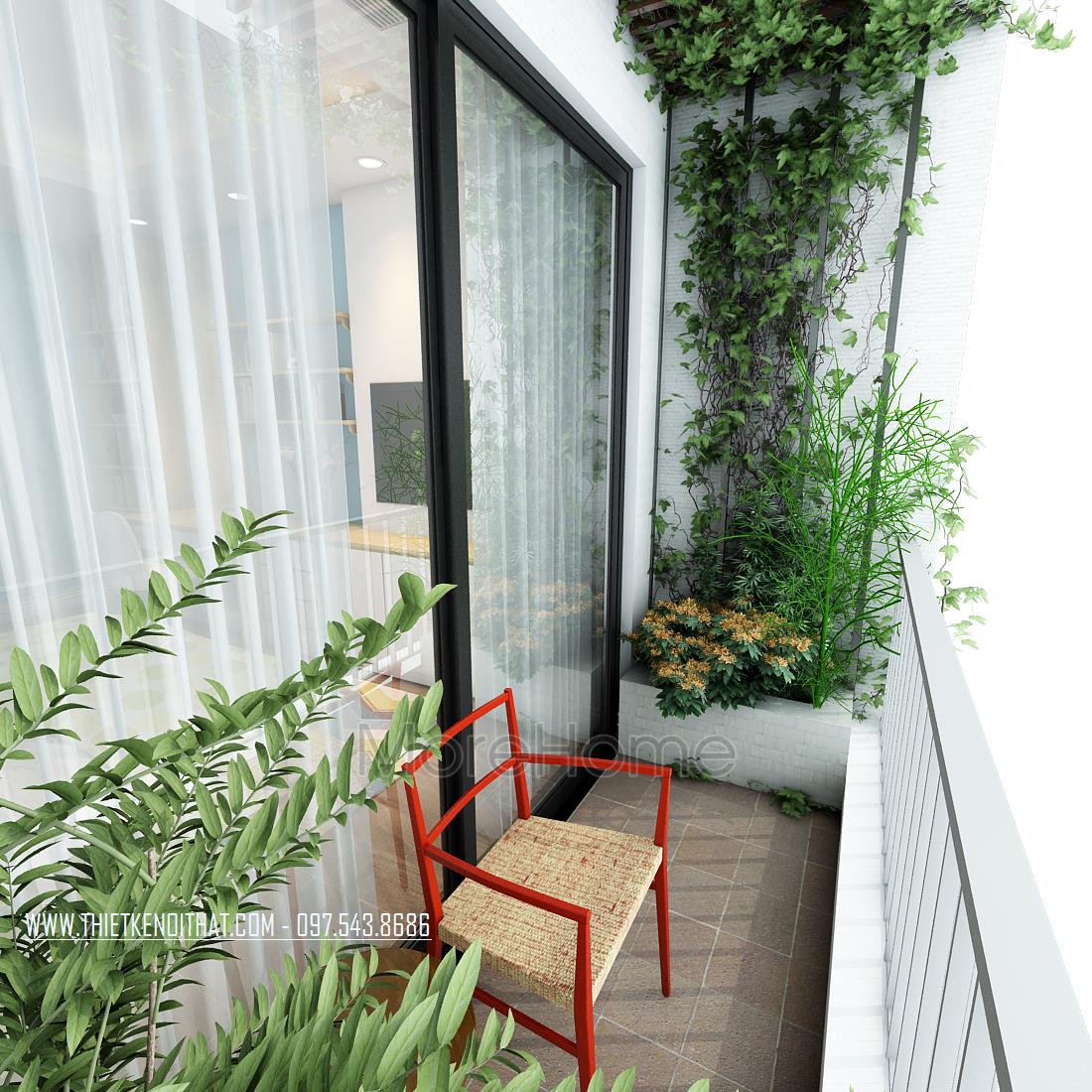 Thiết kế không gian xanh tại ban công là một trong những thiết kế được ưa thích. Không gian xanh mở ra một thiết kế xanh gọn gàng thư giãn, phóng tầm mắt ra xa giúp gia chủ thư giãn và nghỉ ngơi sau một ngày dài mệt mỏi. Một góc nhỏ của ban công được dành để trồng cây leo, thiết kế không quá rộng nhưng đủ để mang đến sự cân bằng xanh tinh tế cho căn hộ.