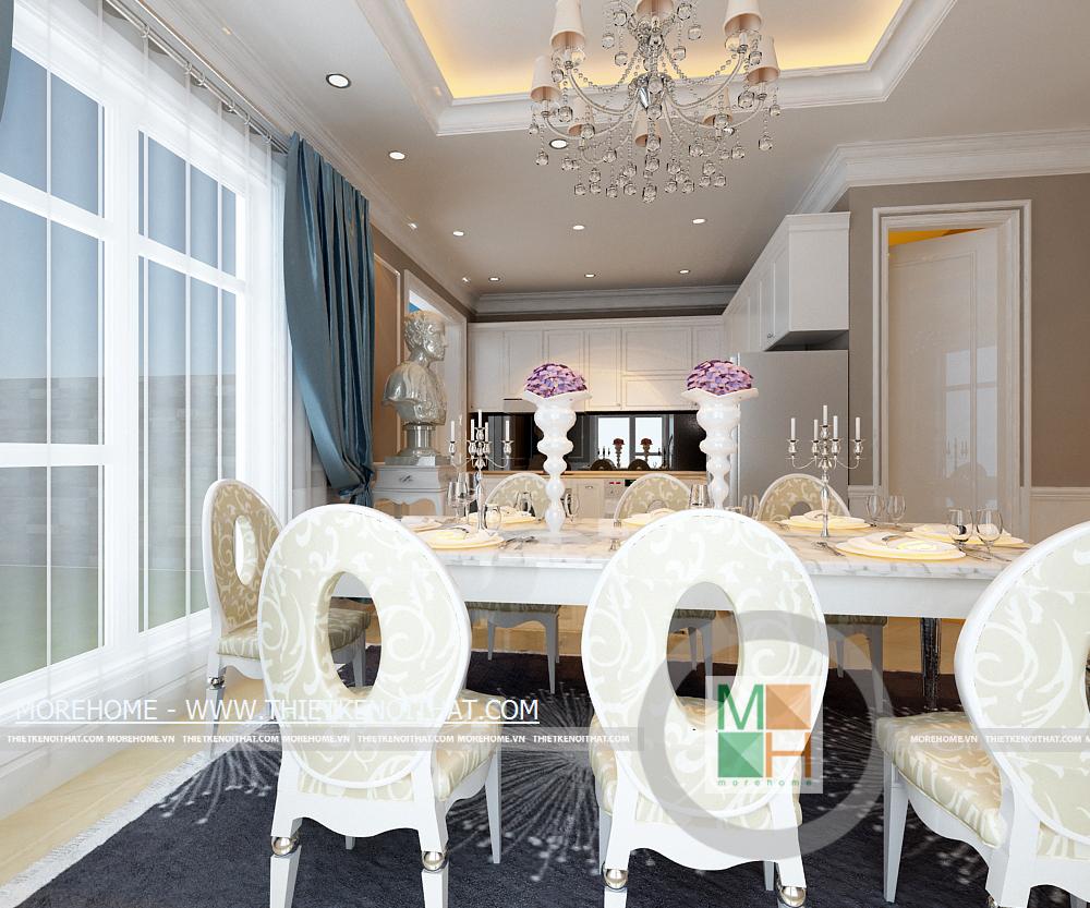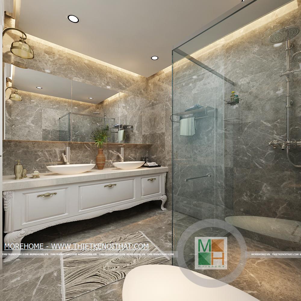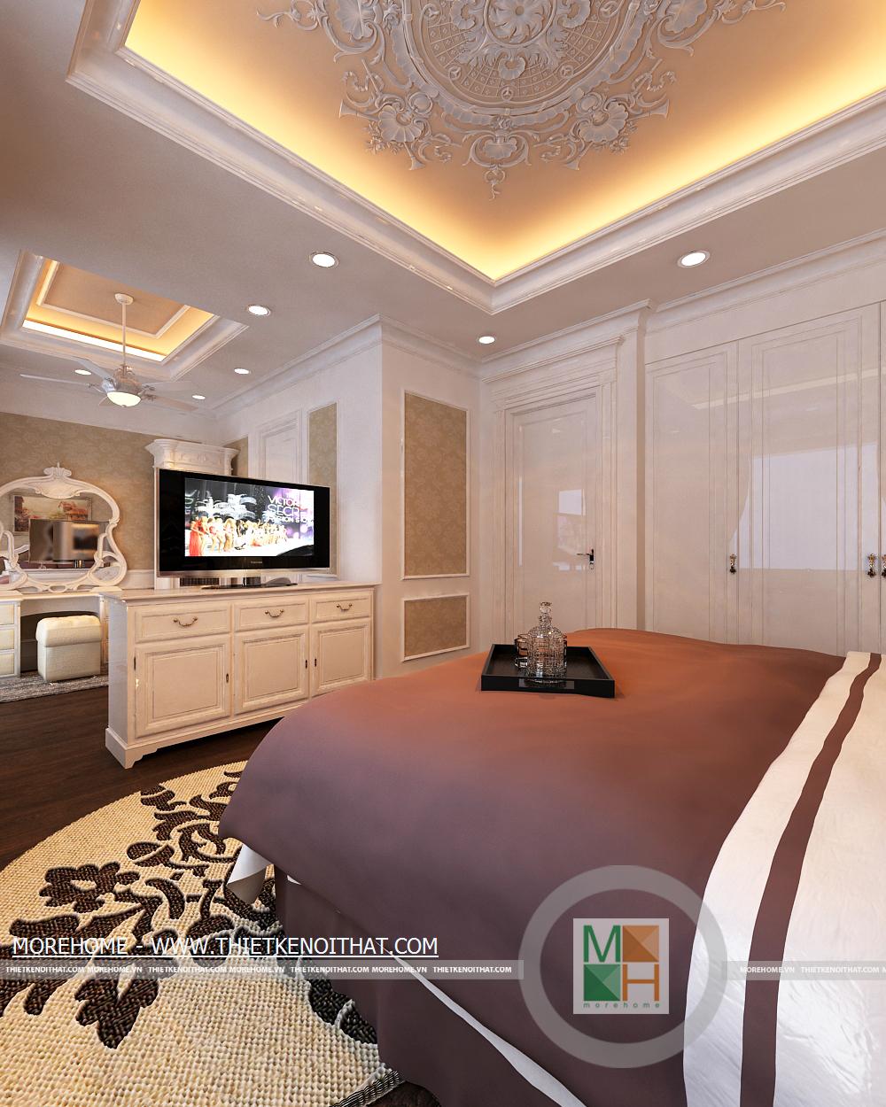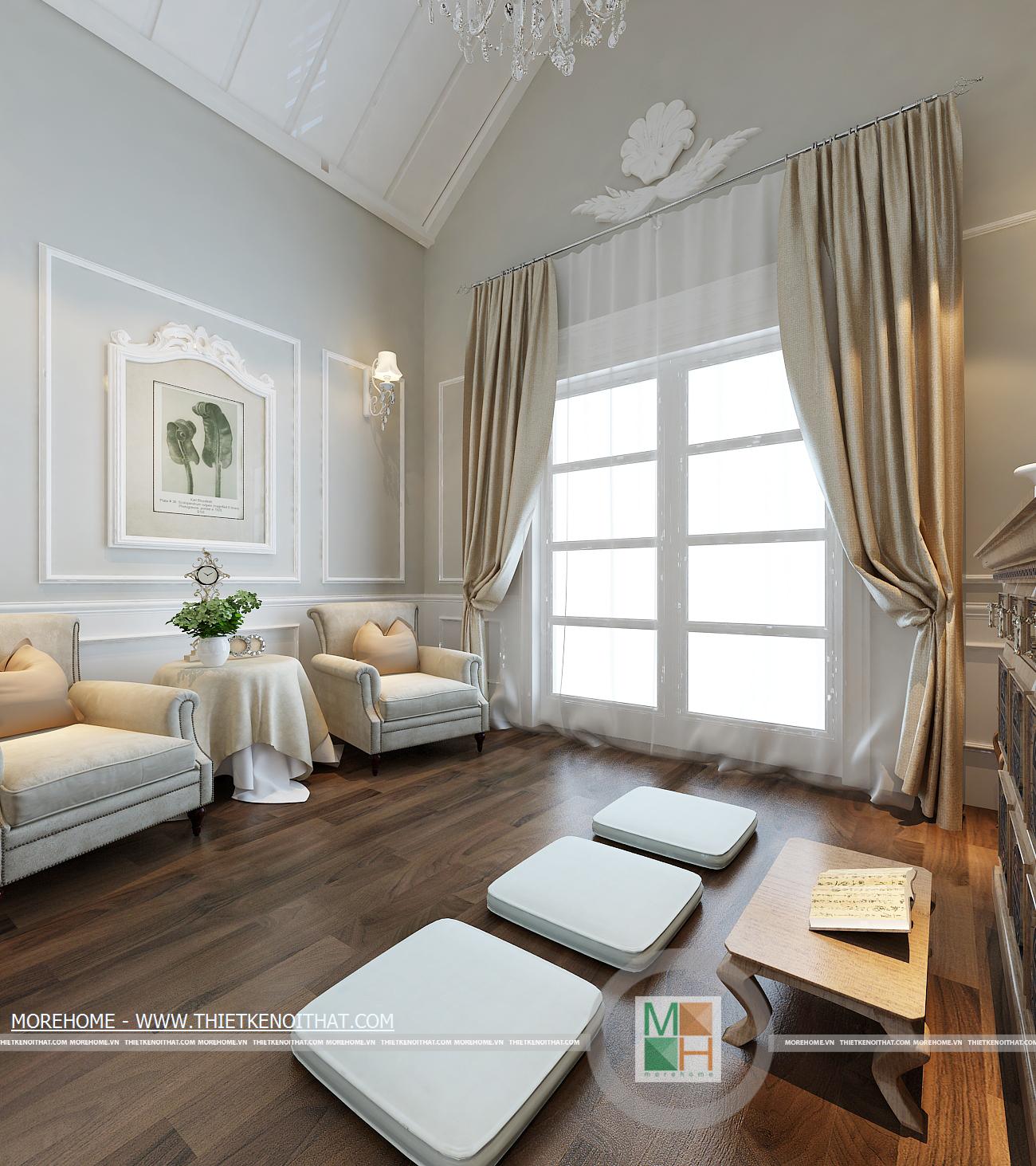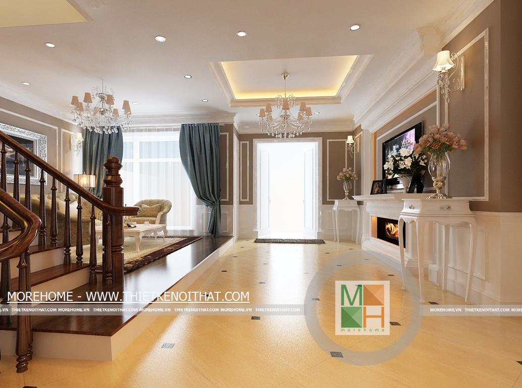 Thiết kế nội thất biệt thự tân cổ điển là một công việc đòi hỏi sự tinh tế và hàm chứa tính nghệ thuật cao để thể hiện được đẳng cấp sống của gia chủ. Tuy vậy nhưng các kiến trúc sư của Morehome vẫn đảm bảo được các yêu cầu đó và cho ra những sản phẩm hoàn hảo như căn biệt thự của dự án Vinhome Riverside - khu biệt thự Hoa Lan này.