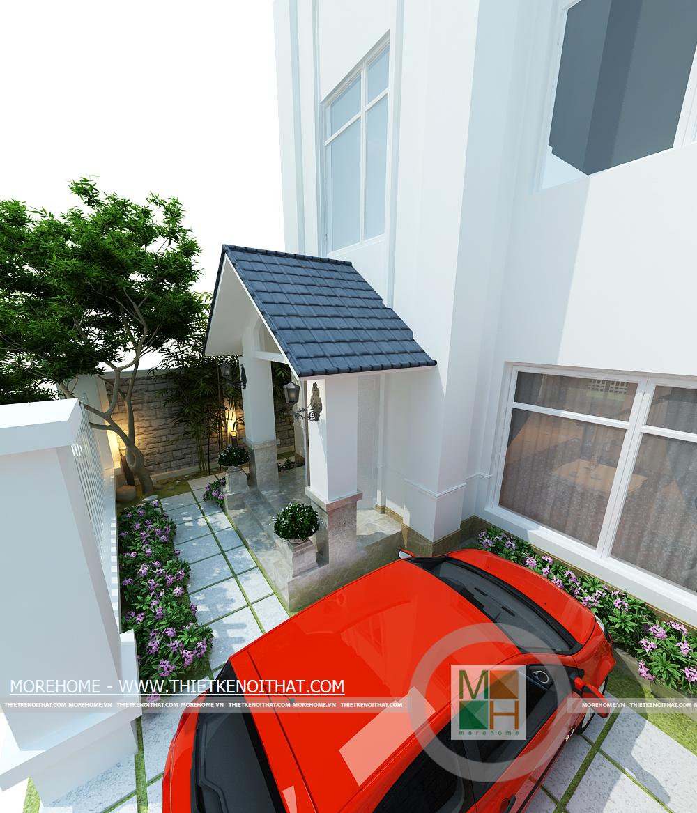 Thiết kế biệt thự Vinhomes Riverside sẽ khiến cho bạn phải bất ngờ vì độ sang trọng và lỗng lẫy ngay từ bên ngoài. Sân trước của ngôi nhà là một khu vườn rộng lớn, được tô điểm bằng những bông hoa đầy hương sắc, tạo không gian thư giãn và hòa quyện với thiên nhiên ngay tại chính ngôi nhà của mình. Hành lang bên hông sử dụng phương pháp dẫn hướng ánh sáng dọc lối đi để tạo cảm giác rộng rãi. Trên cỏ có các phiến đá được đặt tự do bao quanh sân vườn như tính tự nhiên vốn có. Một hàng tre được trồng ở phần hành lang này tạo ra cảm giác thân thuộc, gần gũi qua hơi thở dân gian.