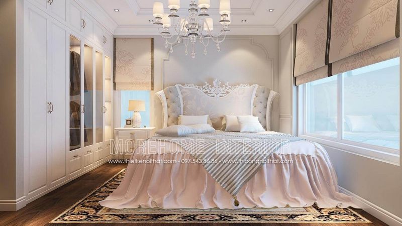 Tủ áo gỗ công nghiệp sơn cao cấp có phong cách tân cổ điển, kết hợp với kính tủ áo chung cư.