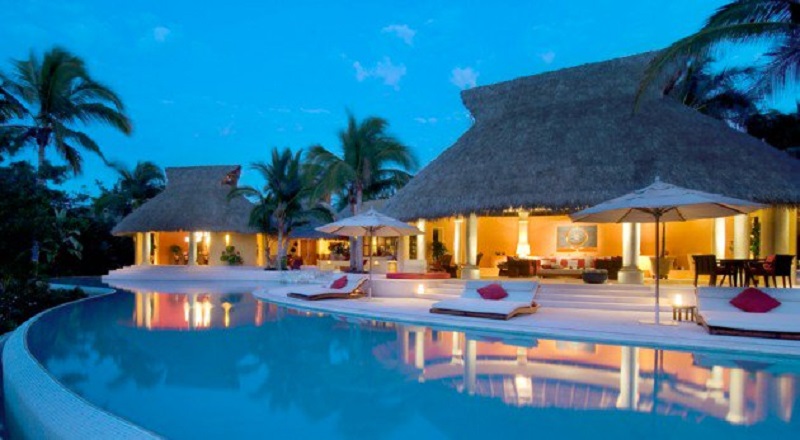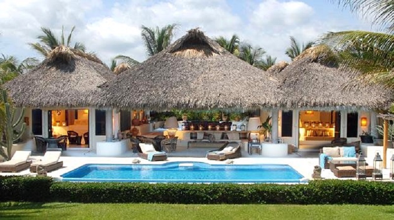 Không mang nét cầu kỳ, sang chảnh như biệt thự ở Dubai, căn biệt thự Palmasola - Punta Mita, Mê-hi-cô lại mang một vẻ đẹp mộc mạc và bình dị, rất thân thuộc. Đó là những căn biệt thự một tầng được lợp mái lá, mang nét hoang sơ, tự nhiên nhưng được nâng cấp lên cho thiết kế biệt thự sang trọng. Điểm đặc biệt là biệt thự này không có cửa, nó giống cái chòi nhiều hơn. Đây được xem là một sự kết hợp hoàn hảo của nhiều kiến trúc, nhiều phong cách để tạo nên một sản phẩm đẹp mắt và độc đáo. Hồ bơi uốn hình vòng cung, ôm lấy một bên của biệt thự, tạo nên không gian gần gũi, khăng khít.