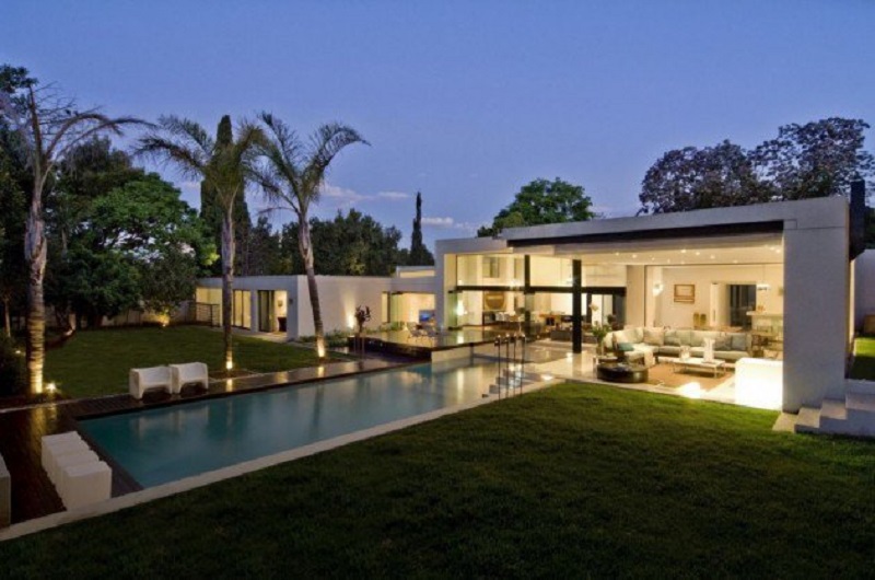 Căn biệt thự này như đánh lừa thị giác chúng ta, khiến bạn chẳng thấy mái che của chúng đâu. Biệt thự hình chữ L, có 2 tầng nhưng được phân chia thành nhiều gian nhỏ, rất mới lạ. Hồ bơi độc đáo, có 2 tầng, xung quanh đặt những viên đá lớn được mài nhẵn và sáng bóng.