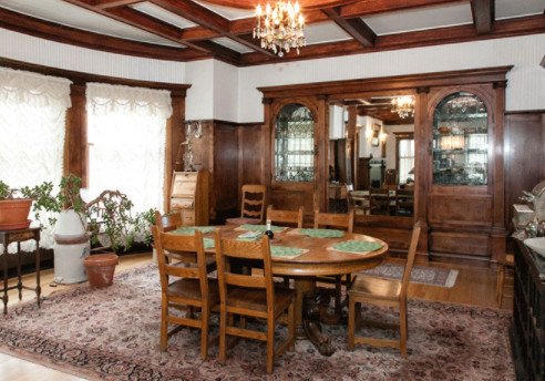Bên trong ngôi biệt thự được thiết kế đầy đủ các không gian chức năng với phòng khách, phòng ăn phòng ngủ, phòng tắm, lò sưởi, thư viện, phòng lưu trữ thức ăn, phòng tắm nắng, nhà bếp, phòng làm việc. Các phần trang trí phụ như trần nhà coffered đẹp, cầu thang lớn, cầu thang riêng trong nhà bếp đều được thiết kế với hoa văn và kết cấu độc đáo từ gỗ tự nhiên.